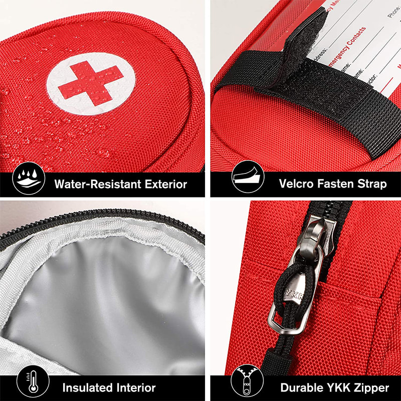Ang bag na may dalang gamot na ito ay may kasamang emergency contact Info card, na naglalaman ng iyong impormasyon at ng iyong manggagamot.