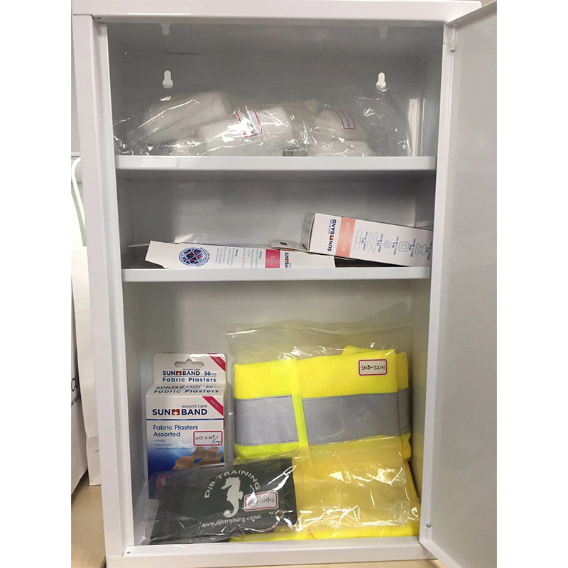 Maaaring ibenta ang first aid metal cabinet na walang laman o punuin ng mga supply ng first aid na iyong pinili.