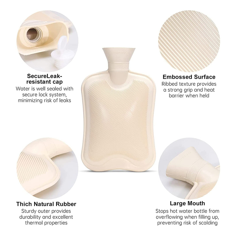 Madaling punuin ang malapad na bibig at ang anti spurt na labi ng mainit na bote ng tubig na may takip ay pumipigil sa pagdura ng tubig pabalik tulad ng mga lumang goma.