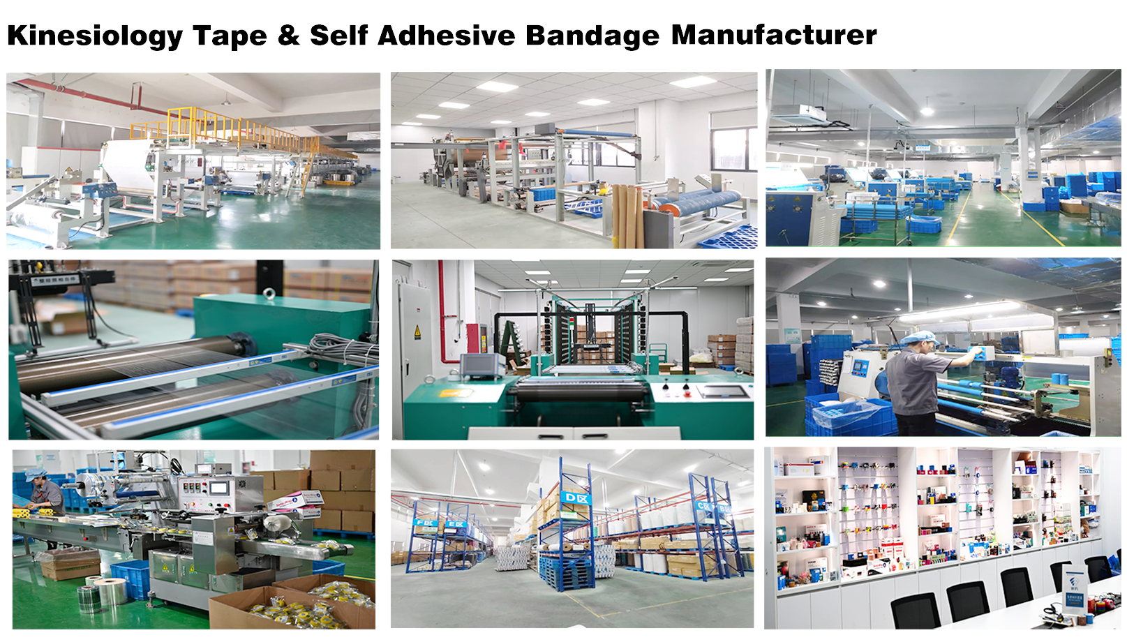 Kasama sa aming mga merkado ang mga ospital, mga supplier ng first aid, supermarket, at retail na tindahan ng sports. Noong 2008, itinatag namin ang aming pabrika ng first aid upang matugunan ang mga hinihingi ng aming mga customer ng first aid. Noong 2021, para matugunan ang lumalaking pangangailangan ng aming mga customer, nagtayo kami ng sarili naming pabrika para sa kinesiology tape, cohesive bandages (self-adhesive wrap), at elastic adhesive bandages.