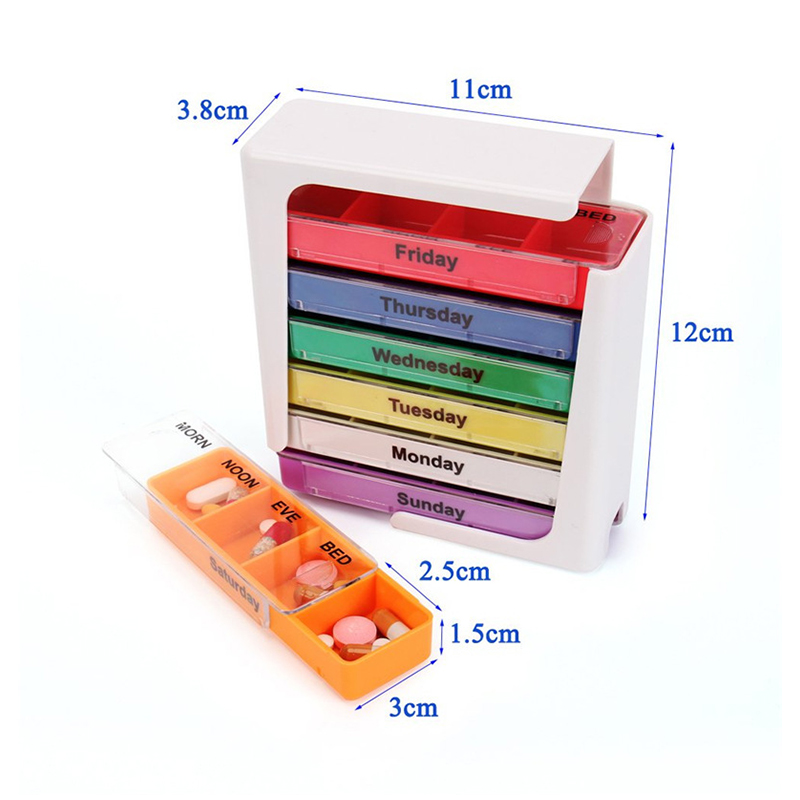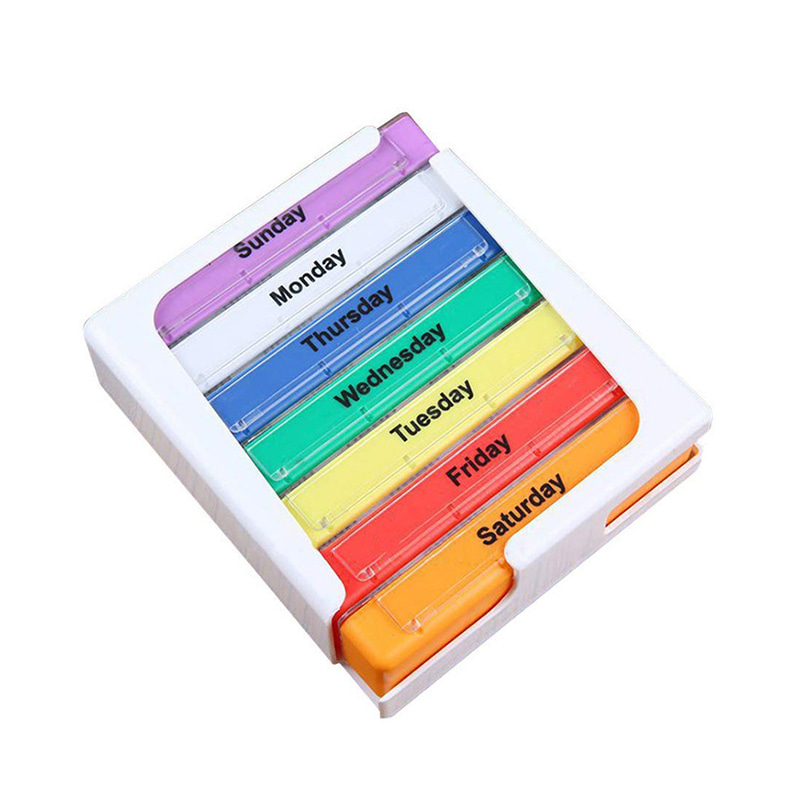 Ang panlabas na case ay dinisenyo na transparent at ang bawat tray ay may natatanging maliwanag na kulay para madaling makilala ng user ang mga araw ng linggo.