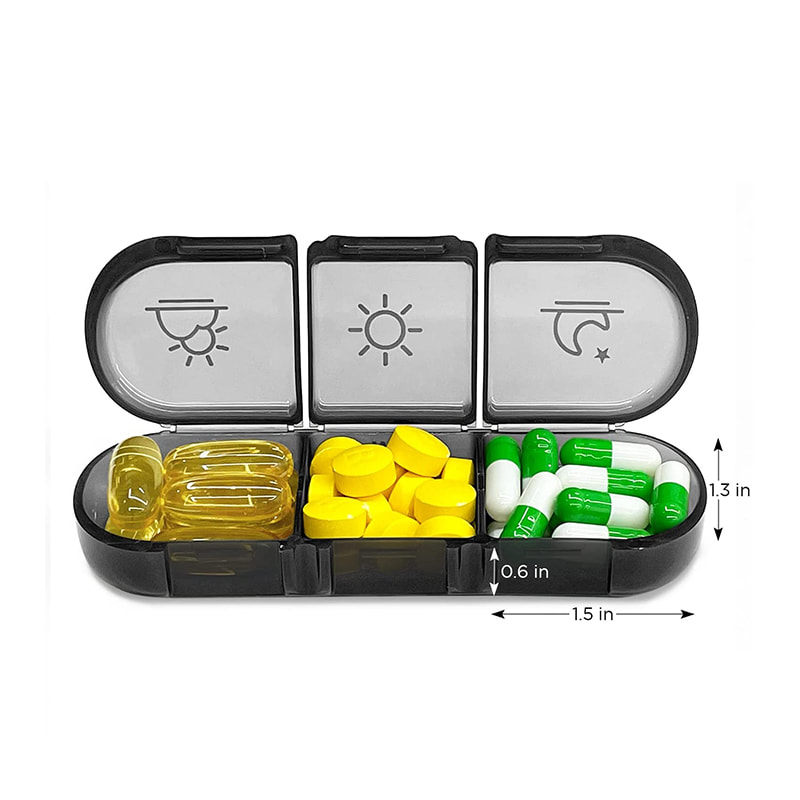 Ang disenyo ng dobleng proteksyon ay ginagawang ang mga takip ng pill box 3 beses sa isang araw ay laging nananatiling nakasara, hindi kailanman lumalabas.