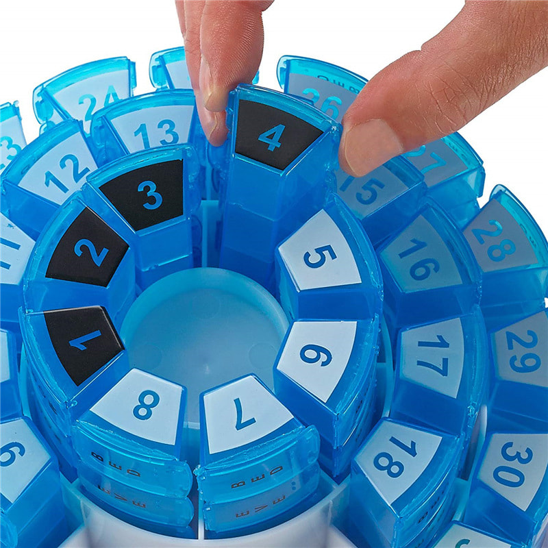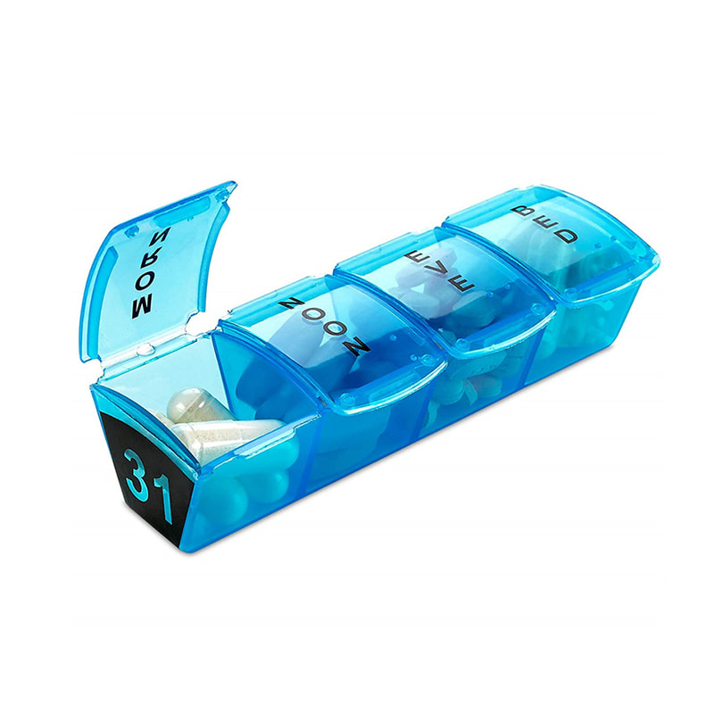Makakatanggap ka ng 31 pang-araw-araw na organizer bawat isa ay naglalaman ng 4 na compartment, AM, Noon, PM at Bed.