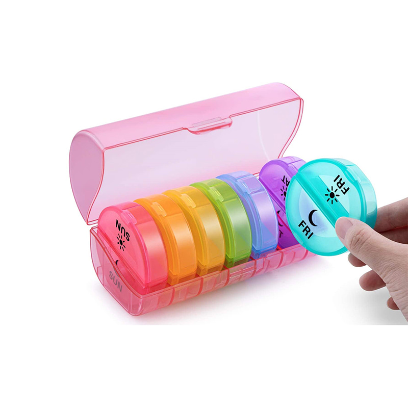 Mas mahusay na sinusubaybayan ng mga 7-color na pill organizer box ang iyong gamot 2 beses sa isang araw sa umaga at hapon.