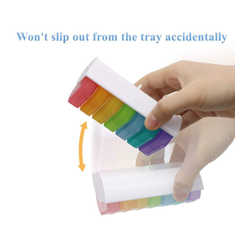Sa mga secure na snap down na takip sa bawat compartment, makatitiyak ka na kahit na maihulog, mananatili ang iyong mga tabletas.