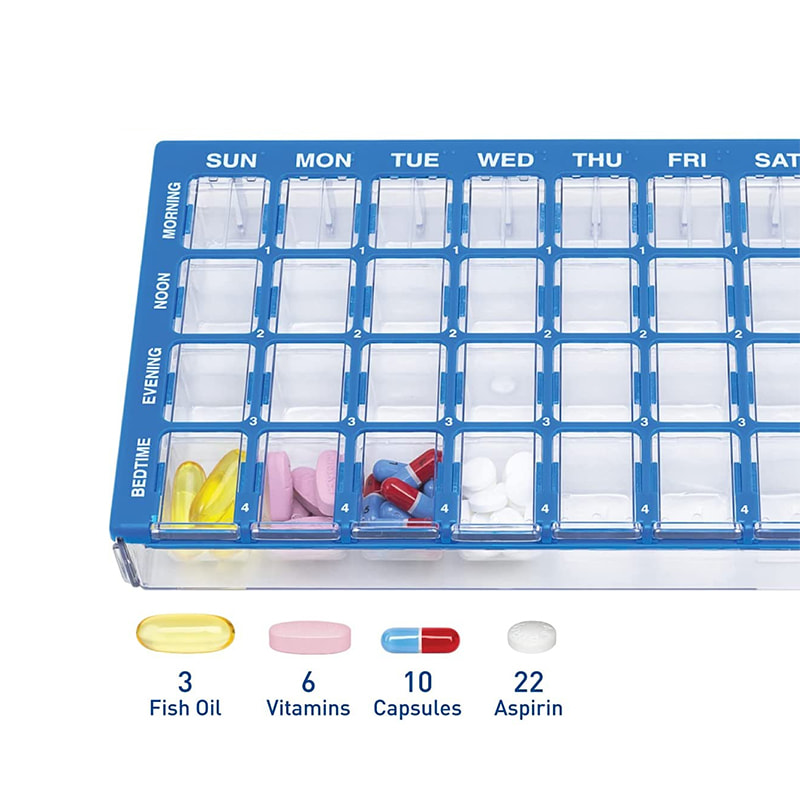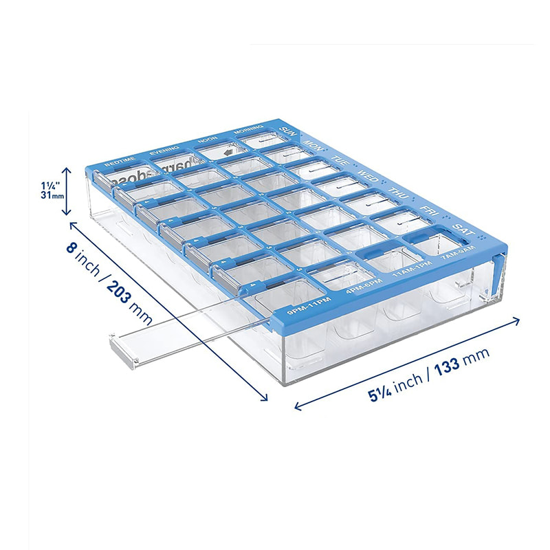 PILL CAPACITY: Hawak ng hanggang 20 pill bawat compartment (aspirin-sized)