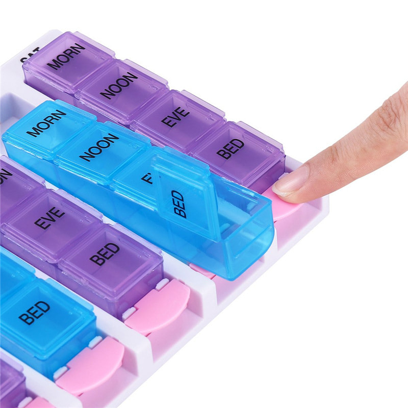 MADALING PAGGAMIT: Push button at bilugan na ilalim, Ginagawang madaling buksan ang pill organizer at madaling makuha ang gamot