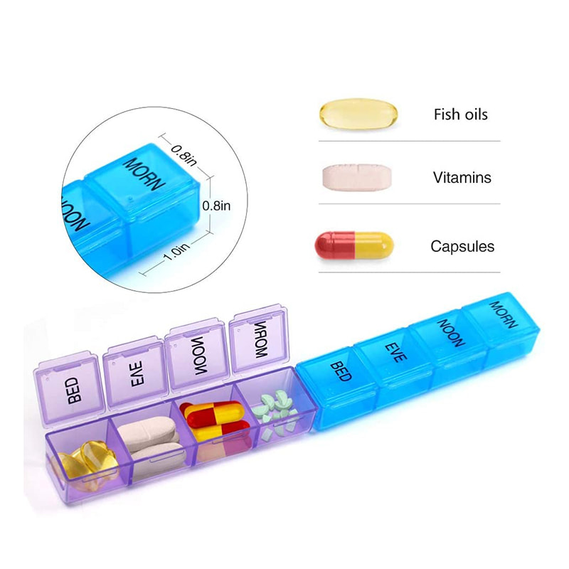 PILL CAPACITY: Hawak ng hanggang 11 pills bawat compartment (aspirin-sized)