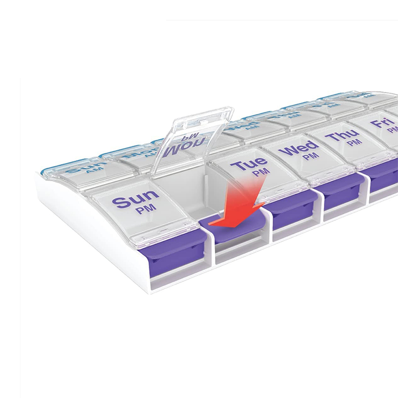 MADALING PAGGAMIT: Push button at bilugan na ilalim, Ginagawang madaling buksan ang pill organizer at madaling makuha ang gamot