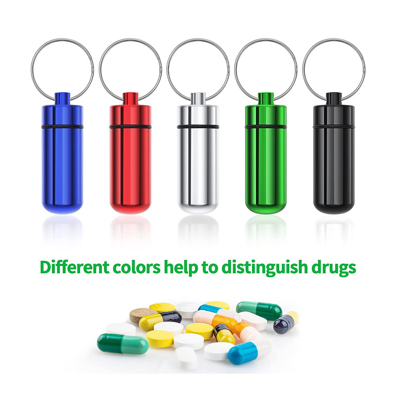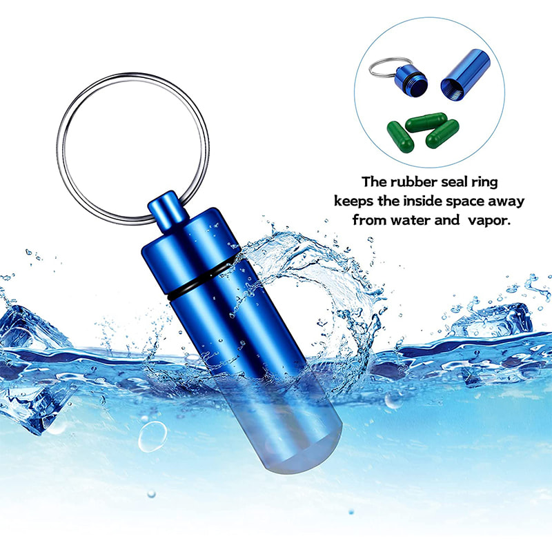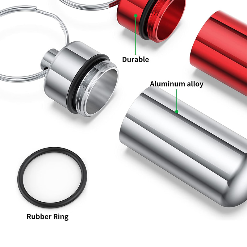 Ang pill holder ay may rubber O-ring gasket sa takip ng tornilyo na ginawa itong airtight at sapat na hindi tinatablan ng tubig upang mapanatiling ligtas at tuyo ang iyong mga tabletas sa loob kapag ikaw ay nasa bakasyon, biyahe, camping o anumang aktibidad sa labas.