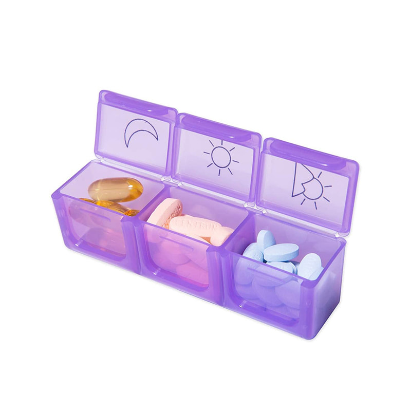 Ang bawat pang-araw-araw na pill case ay color coded, at dinisenyo na may 3 compartment - umaga, tanghali, gabi.