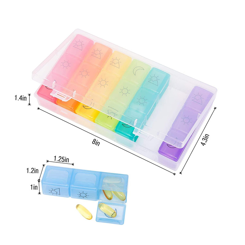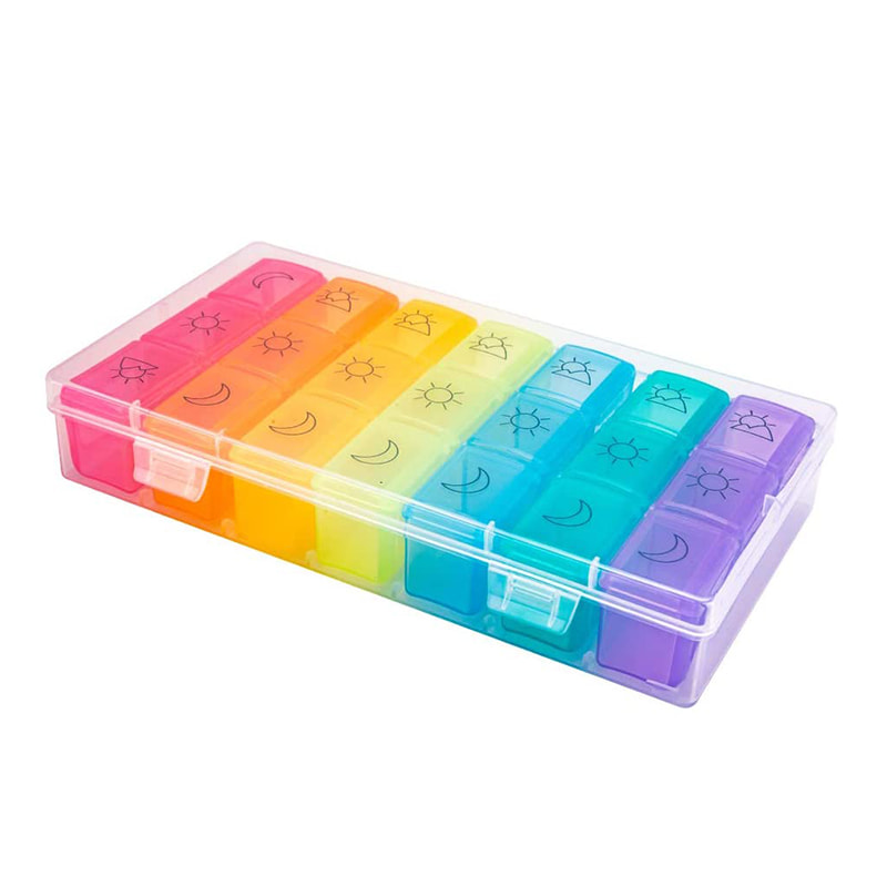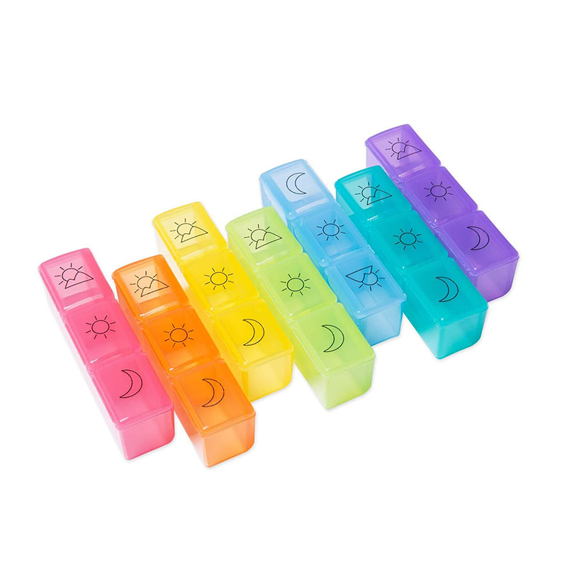 Ang maliwanag na kulay ng indibidwal na panloob na pill box ay tumutugma sa isang araw ng linggo