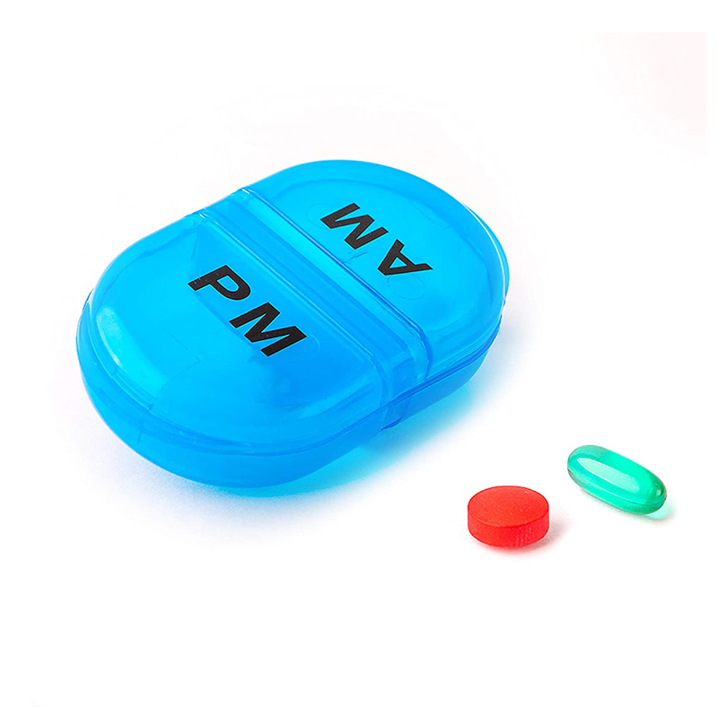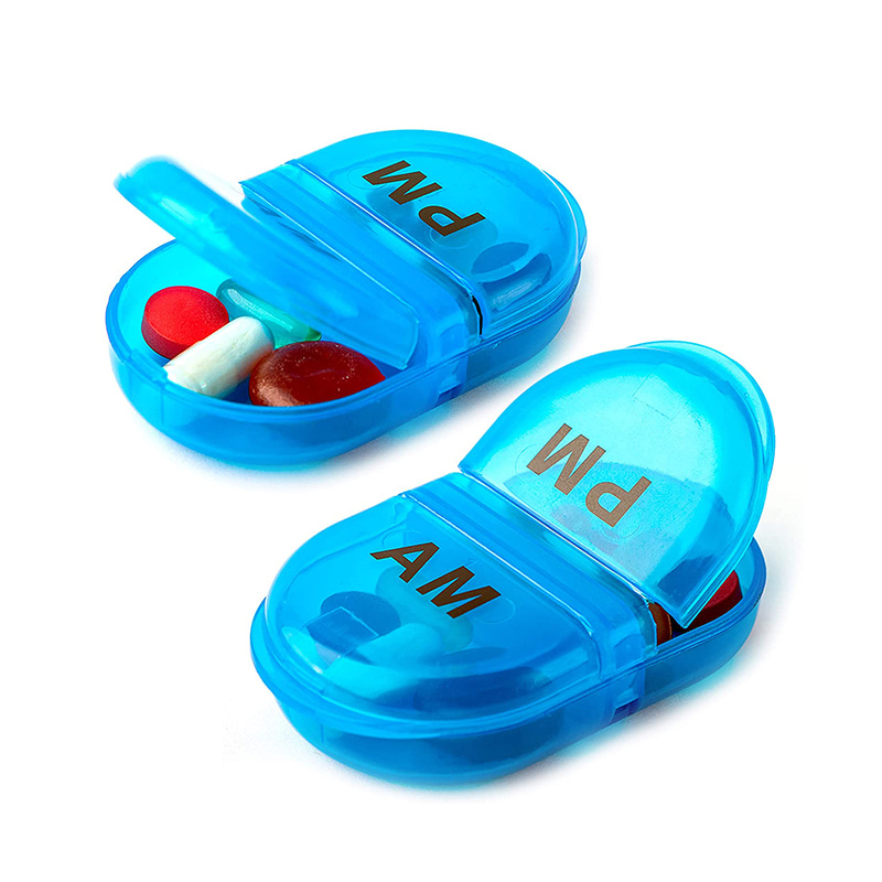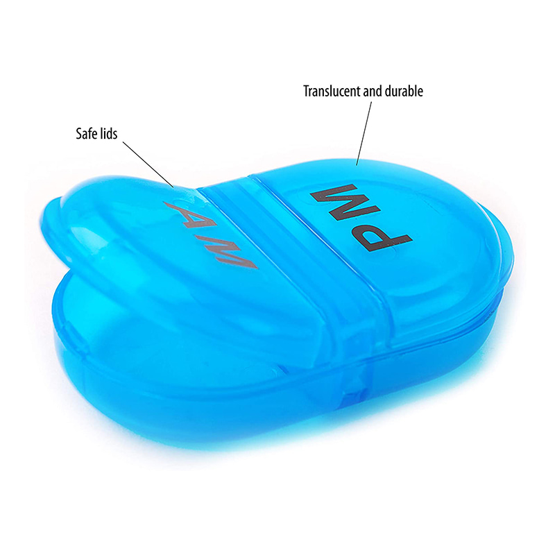 2 sobrang malalaking compartment, 1 case AM para sa mga gamot sa umaga, 1 na may PM para sa mga gamot sa gabi o gabi. Mas madaling hawakan.