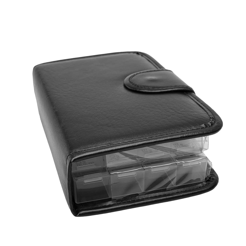 Ang panlabas ng pill dispenser holder ay cotton polyester fabric o fancy faux leather.