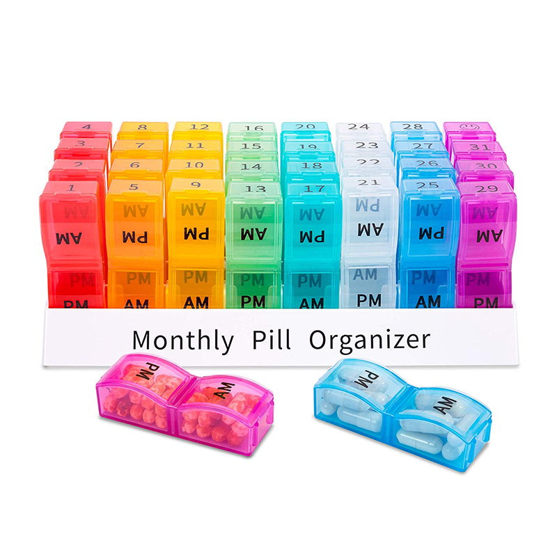 Nagtatampok ang aming 31 araw na buwanang organizer ng tableta ng 32 na may bilang na maliwanag at makulay na translucent na indibidwal na mga kaso ng tableta, maaari mong tingnan kung nainom mo na ang iyong mga tabletas para sa araw na iyon at sa paraang iyon ay hindi mo na kailangang magtago ng maramihang mga kahon ng tableta.