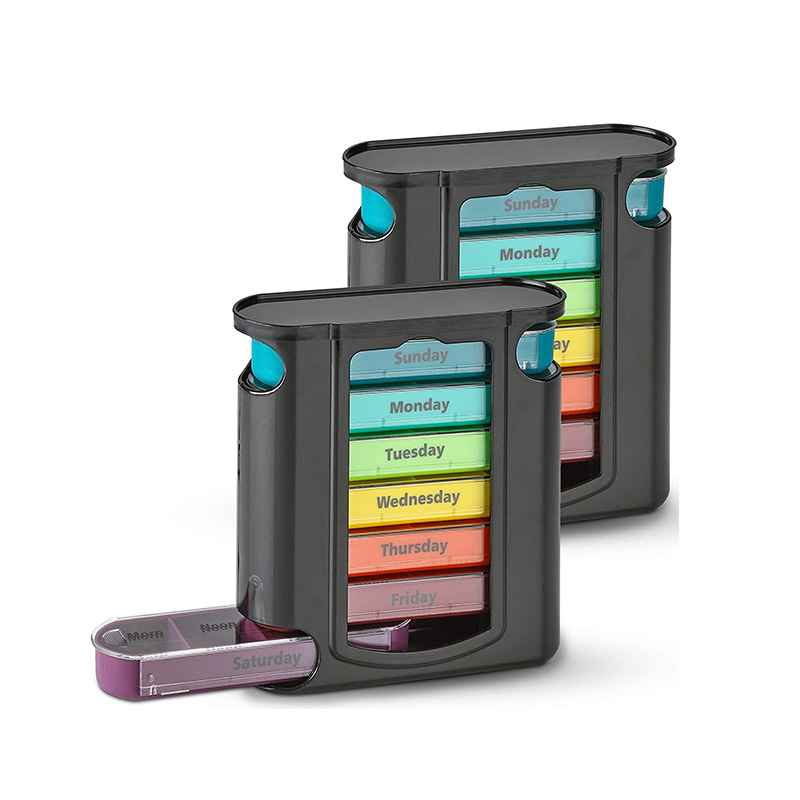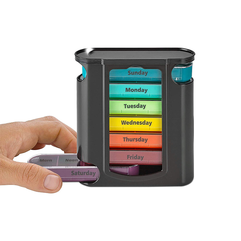 Ang panlabas na case ay dinisenyo na transparent at ang bawat tray ay may natatanging maliwanag na kulay para madaling makilala ng user ang mga araw ng linggo.