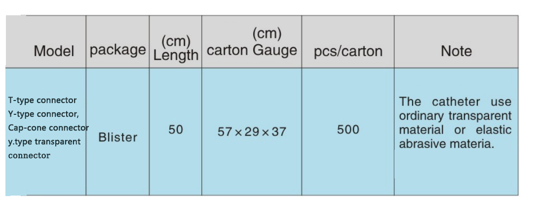 * Apat na uri ng connector na available T-type connector Y-type connector, Cap-cone connector y.type transparent connector.