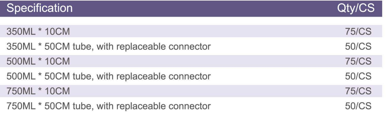 Mga bag na hugis brilyante o Square, antirefux valve, inlet ubing