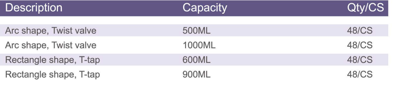 Available ang kapasidad sa 350ml,500ml,600ml,750ml,800ml,