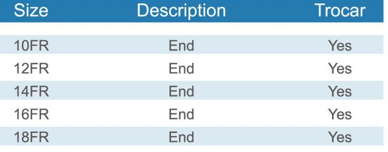 iba't ibang laki. Nagtatampok ang mga Drain ng radiopaque stripe para sa x-ray detection.